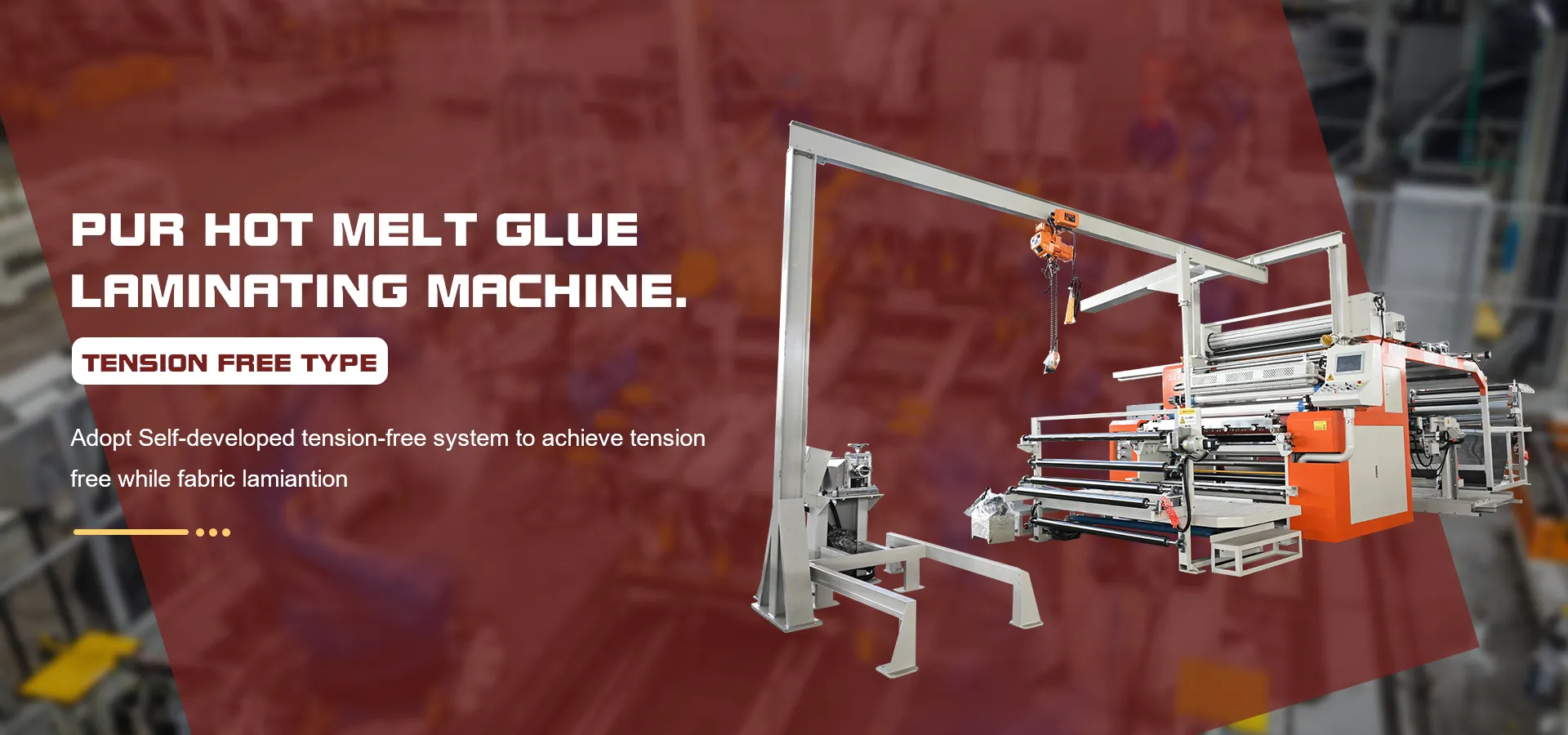 Hot melt adhesive composite machine mainly continues to be coated on water-based rubber, used for winding composite materials, washing strength is not high.
